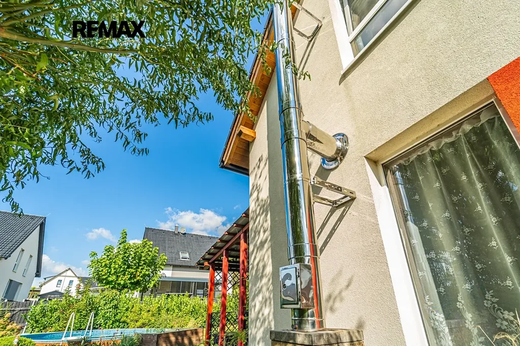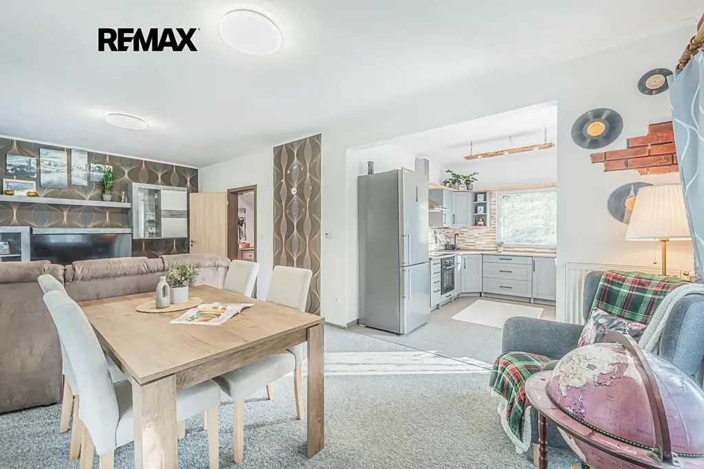Nemovitost sestává z rodinného domu o dispozici 4+kk (96 m2) , samostatně stojící garáže s montážní jámou (20 m2), zastřešené terasy (15 m2), přírodního jezírka, zahradního domku a polozapuštěného venkovního bazénu. Bazén i jezírko disponují čistícím a filtračním zařízením. Na první pohled Vás osloví pečlivě udržovaná zahrada kolem domu, citlivě kombinující okrasné a užitkové prvky.