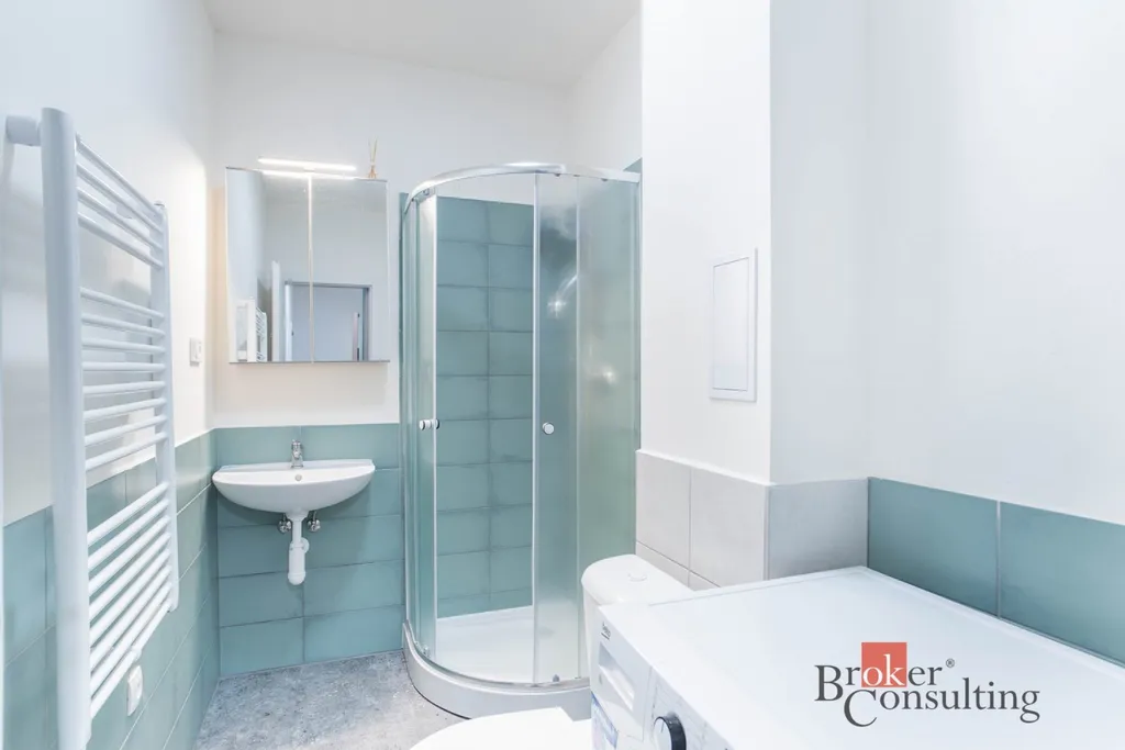 Byt má novou koupelnu se sprchovým koutem a WC.