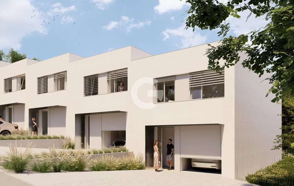 Každý dům disponuje garáží a dvěma parkovacími místy před domem — celkem 3 místa pro vozidla.