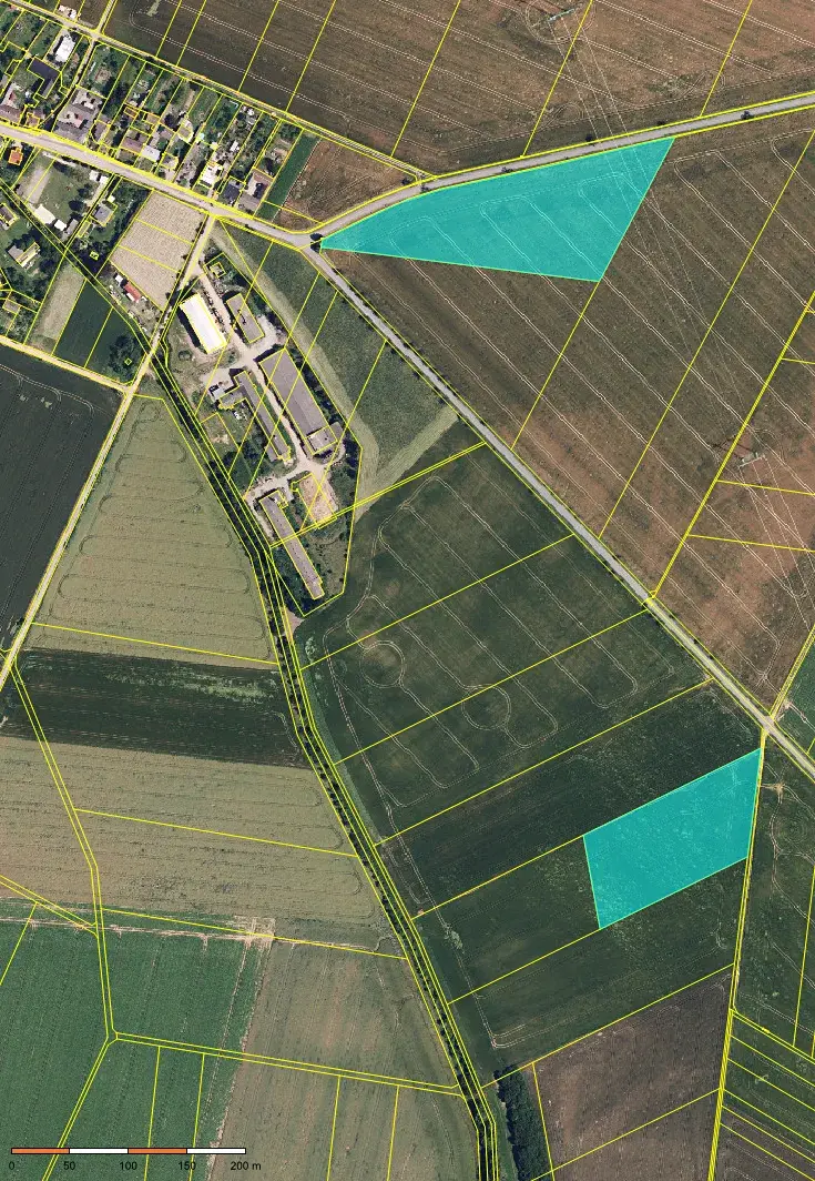 Menší pozemek o výměře 12.065m2, vedený jako orná půdy, se nachází vedle polní cesty ve vlastníctví obce.