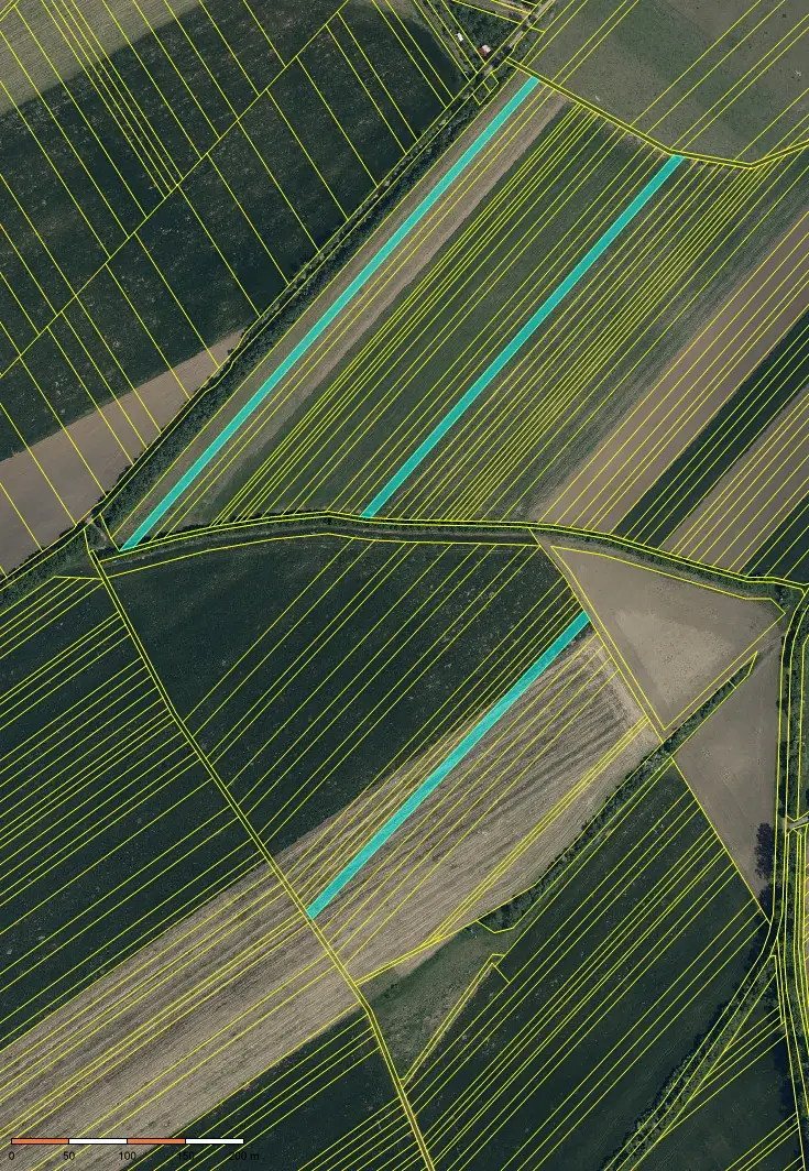 pozemky tvoří více parcel rozmístěných v rámci katastru, ve vzájemné blízkosti u přístupových cest