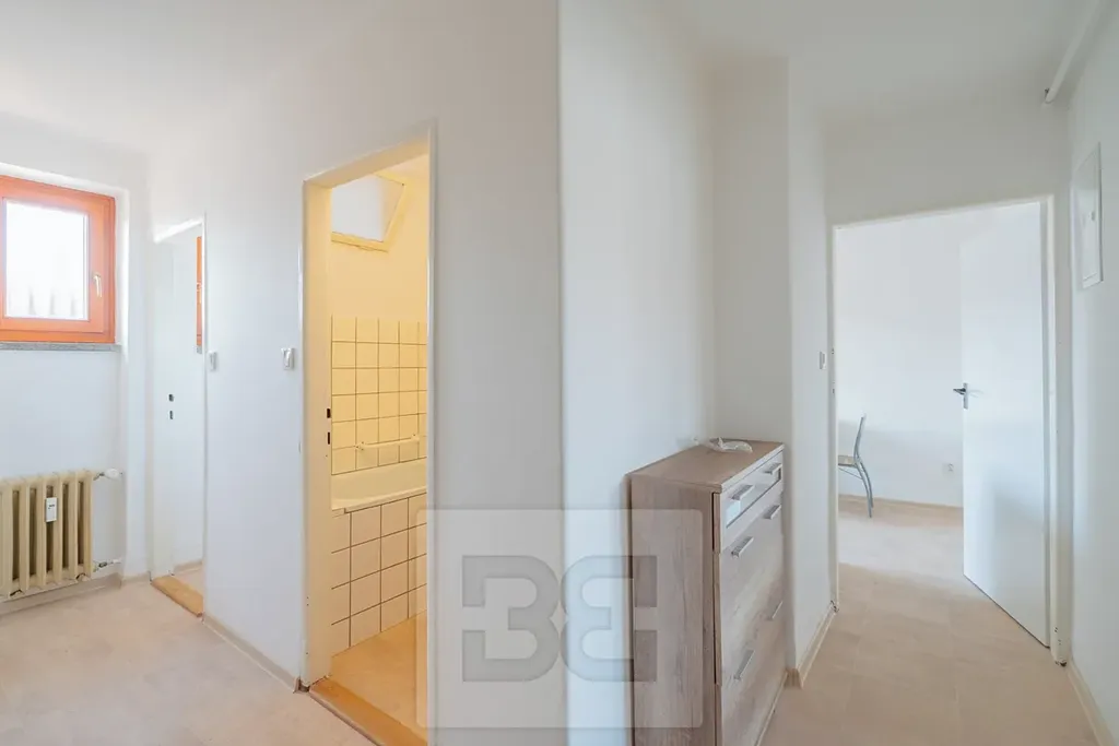 Nabízíme k pronájmu prostorný byt o dispozici 2+1 a celkové výměře 61 m², který se nachází ve 3. (posledním) patře dobře udržované a zateplené budovy bez výtahu, na adrese Skupova 1068/12.