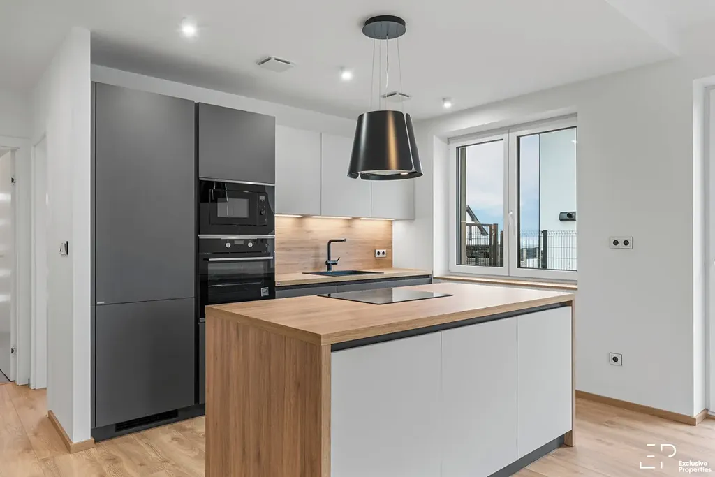 Nabízíme k pronájmu nový moderní rodinný dům o dispozici 5+kk v projektu Sun Valley v obci Tuřany u Slaného. Jednotka je součástí trojdomu, avšak díky rohovému umístění funguje jako samostatný rodinný dům s vlastní zahradou, terasou a parkováním.