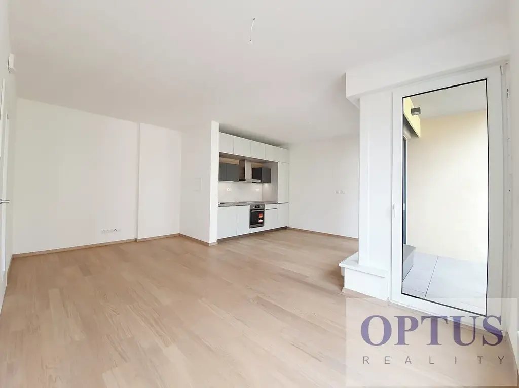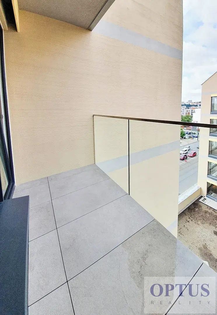 Nabízíme k pronájmu nezařízený luxusní byt 2 + kuchyňský kout (48,4 m2) + lodžie 3,4 m2 situovaný v 6. nadzemním podlaží nového rezidenčního domu s výtahem. Byt tvoří obývací pokoj s plně vybaveným kuchyňským koutem (26,5 m2) a se vstupem na lodžii, ložnice (12 m2), koupelna se sprchovým koutem + WC a předsíň.