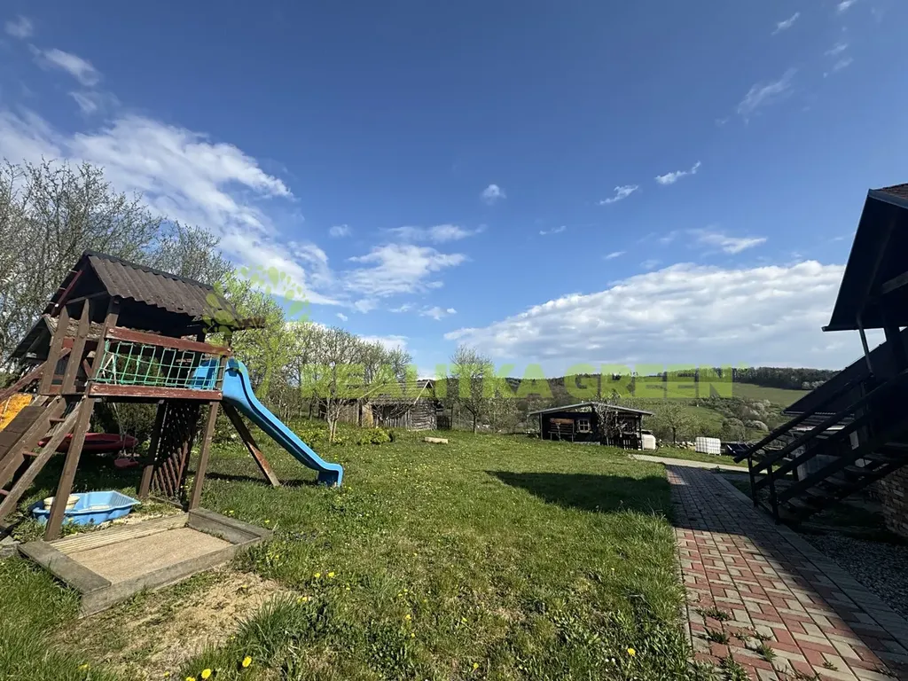 Velkým benefitem je také zahrada s dětským koutkem, kde si užijete klidné chvíle s rodinou, a parkování přímo u domu pro 2 auta.
