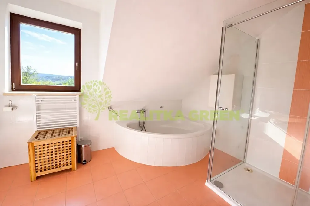 - koupelna s rohovou vanou i sprchovým koutem