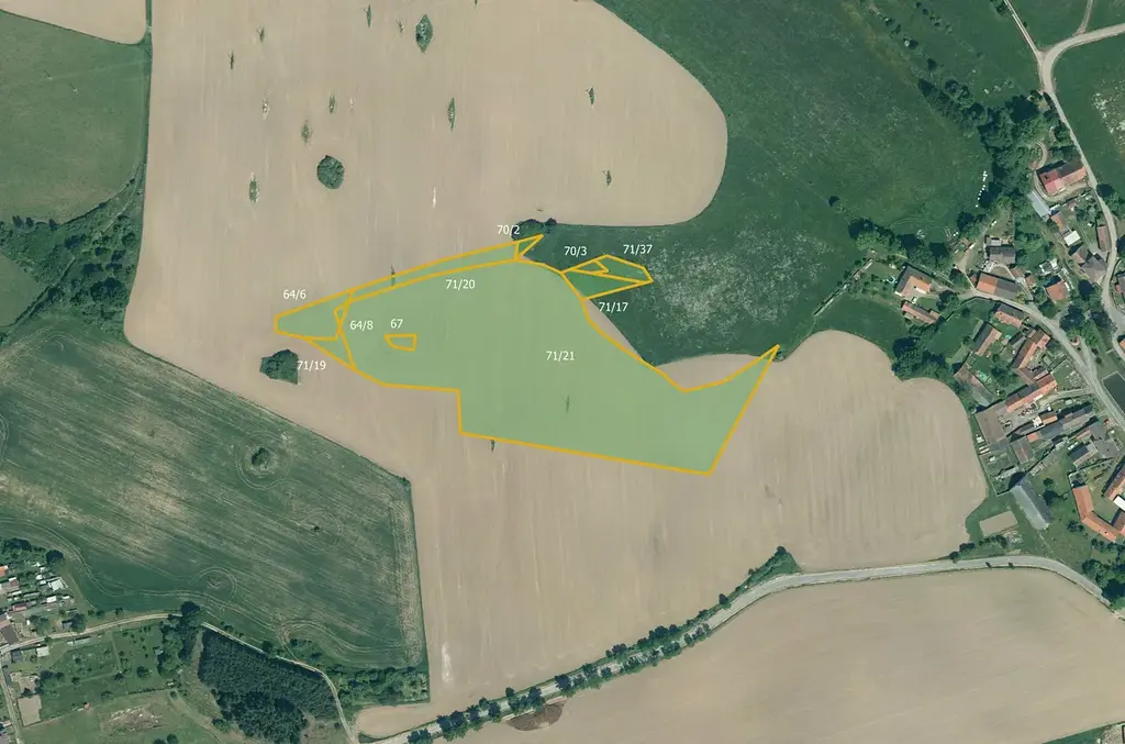 64/6, 64/8, 67, 70/2, 70/3, 71/19, 71/20, 71/21, 71/37, 154/5, 155, 168/14, 168/18, 212/4, 483/6, 497/10 a 212/1.