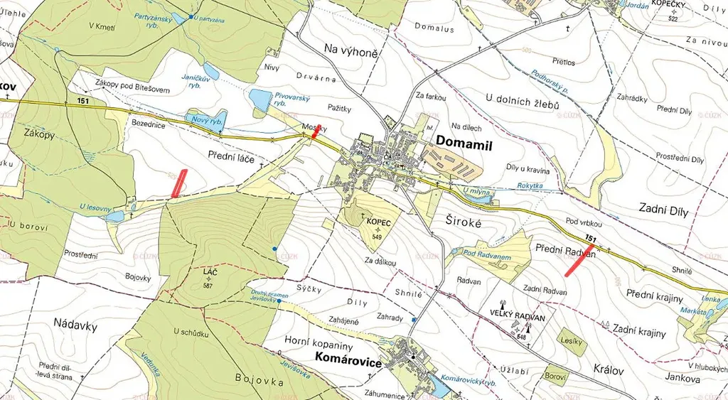 -> KPÚ neproběhly, potenciál budoucího uspořádání pozemků