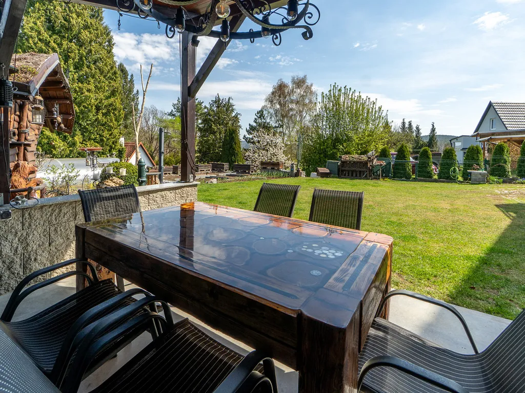 Zahrada je skutečnou oázou klidu – najdete zde ovocné stromy (švestka, jabloň, hrušeň) i keře (maliny, borůvky, ostružiny), skleník, udírnu i dřevník. Praktický je také zahradní domek s přívodem elektřiny a vody.