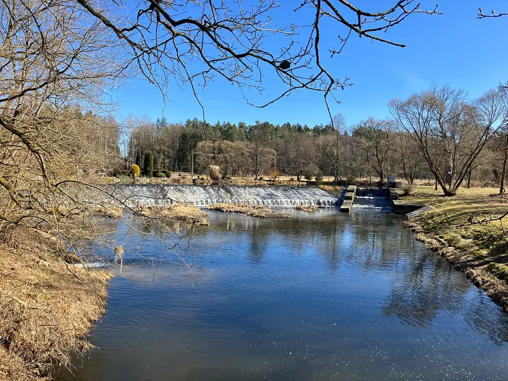 Součástí prodeje je i vila s věží k celkové rekonstrukci. Má zastavěnou plochu 138 m², dvě nadzemní podlaží a podkroví, věž má ještě o patro více. Je napojená na studnu areálu, elektřinu a má vlastní jímku. Za vilou a pilou je pole o výměře 17.701 m² oddělené od areálu pásem půdy. Mezi řekou a statkem jsou tři sádky vydlážděné kameny a napojené na řeku.