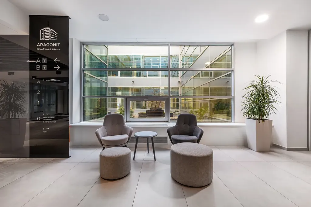 Čtyřpatrová budova Aragonit se nachází v pražských Jinonicích na Praze 5. Je ideální volbou pro ty, kteří upřednostňují útulné pracovní prostředí s rodinnou atmosférou a výhledy do zeleně před velkými administrativními komplexy.