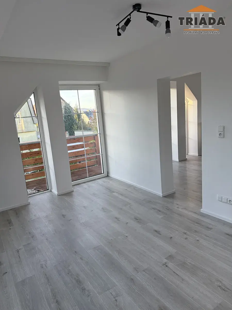 Nabízíme pronájem bytu 3+kk ve 2.NP rodinného domu v Turnově ul. Čapkova. Byt je po částečné rekonstrukci v dobrém stavebně-technickém stavu. Dispozice: chodba se schodištěm, obytný pokoj, velká koupelna s vanou a WC, obytný pokoj s kuchyňským koutem a balkónem, obytný pokoj s balkónem. Teplá voda a topení ústřední - tepelné čerpadlo, VVŘ, el. energie 230/400V, kanalizace obecní. Pěkné a klidné místo ve vilové části města. Cca 5 min chůze je ZŠ, MŠ, městský park a 10 min chůze je to do centra města. Měsíční nájem 17 000 Kč, zálohy na energie 4000 Kč. Skládá se tříměsíční vratná kauce. Celková plocha bytu je 63,5 m2.