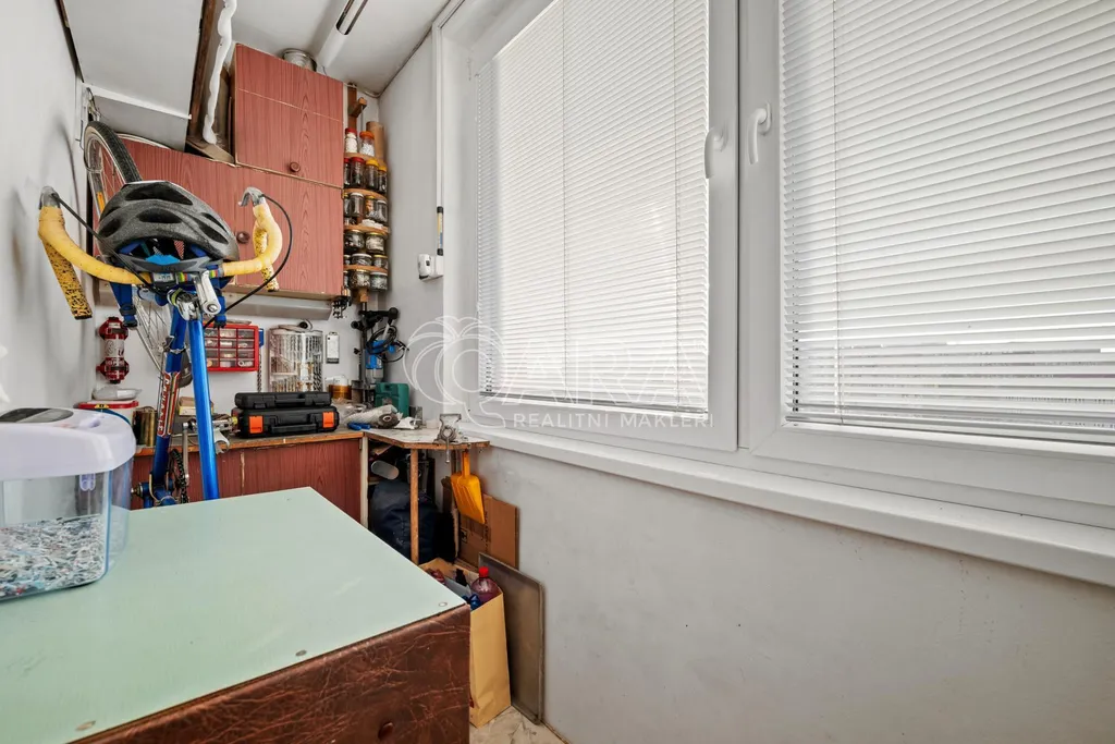 Byt se nachází v 8. patře, v posledním patře, revitalizovaného domu, má čtyři neprůchozí pokoje, včetně velkého obývacího pokoje, kuchyň, koupelnu, samostatnou toaletu, zasklenou lodžii, navíc přikoupenou vstupní předsíň s komorou a zděný sklep. Dispozice bytu je situována jako dvougenerační, kde u pokoje ( samostatné garsonky je příprava na koupelnu s wc - v současné době je zde fotokomora. Poslední 7. patro zajišťuje z lodžie příjemný výhled. Plastová okna zajišťují příjemný tepelný komfort a přispívají k úsporám energií. V bytě je zavedeno ústřední dálkové vytápění s rozvodem tepla do radiátorů.