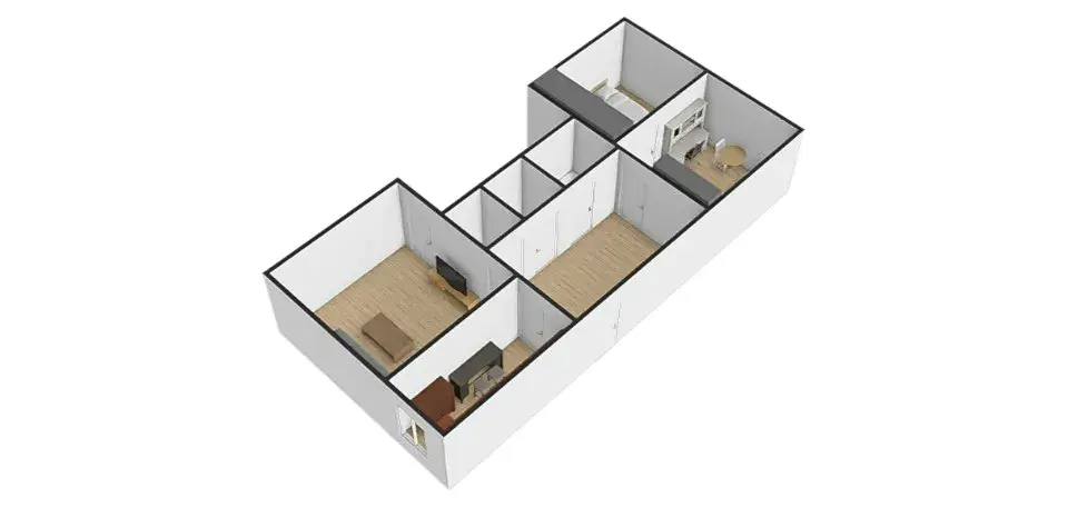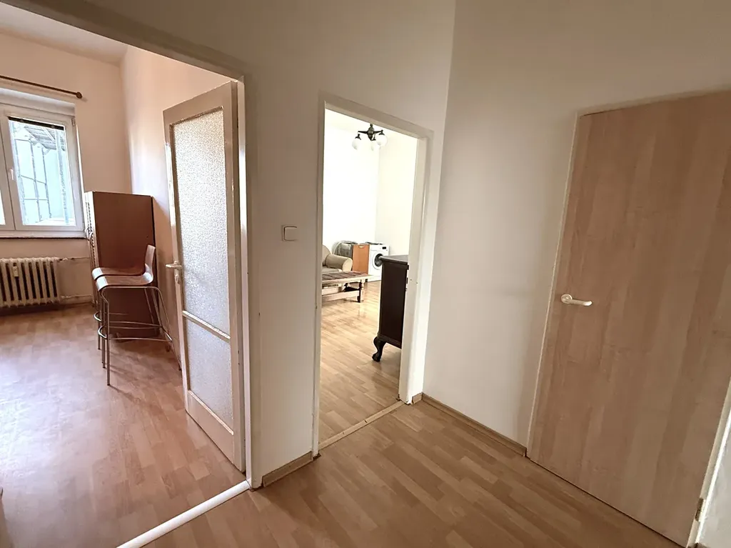 Za vstupními dveřmi se ocitneme na velmi prostorné chodbě (cca 10,30 m2), která disponuje prostornou šatní skříní a vstupy do většiny místností. Po levé straně je kuchyně (cca 10,20 m2), která je vybavena lednicí s mrazákem, novou troubou, novým sporákem a myčkou. Kuchyně je orientována na severovýchod. Velmi pěknou místností je obývací pokoj (cca 18,50 m2) se sedačkou a televizním stolkem, kde hlavní dominantou je velmi prostorný balkón (cca 5 m2). Obývací pokoj s balkónem je orientován na východ. Na chodbě se dále nachází spíž (cca 2,50 m2), která je vybavena regálovým systémem pro jednodušší uskladnění věcí, může sloužit i jako šatna. V bytě dále nalezneme samostatnou toaletu o výměře cca 1 m2 a koupelnu (cca 3 m2), která disponuje vanou, umyvadlem a zrcadlem. Po pravé straně ze vstupní chodby vcházíme do pokoje o výměře cca 18,60 m2, který je vybavený postelí, psacím stolem se židlí a skříněmi, a je orientovaný na jihozápad. Z tohoto prostorného pokoje se vchází do ložnice (cca 12 m2), ve které se nachází velká šatní skříň na míru a dvojlůžko. Ložnice je taktéž orientována na jihozápad.