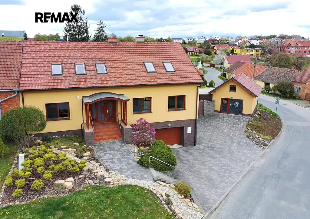 K prodeji je exkluzivně nabízen prostorný rodinný dům 5+kk se zahradou, terasou, dvougaráží a bazénem v Heršpicích. Výjimečná dvoupodlažní zděná nemovitost stojí na rovinatém oploceném pozemku o velikosti 786 m2, plném příjemných míst k relaxaci, ať už je to koupání ve velkém krytém bazénu, posezení na velké bezúdržbové dřevoplastové terase za domem či relax na travnaté ploše. Obytný prostor domu tvoří v patře tři pokoje, šatna, galerie, koupelna s rohovou vanou a WC, v přízemí pak propojení odpočinkové a společenské části pojaté jako obývací pokoj s kuchyňským koutem a s jídelnou, vše propojeno zajímavou stavební kompozicí sladěnou s příjemným výhledem na udržovanou zahradu a vstupem na velkou terasu, dále druhá koupelna se sprchovým koutem a WC, vstupní hala s vestavěnými skříněmi. Součástí prodeje je prostorná kuchyňská linka se značkovými spotřebiči (myčka nádobí, trouba a sporák se sklokeramickou varnou deskou, lednice s mrazákem, dle dohody další nábytek). Vytápění plynovým kotlem (v obývacím pokoji podlahové vytápění), nebytová jednotka vytápěna elektrickou rohoží + el. bojler. Ke komfortu bydlení přispívají eurookna i využití masivního dřeva umocňujícího pocit domova (schody, zábradlí, trámy) a bezúdržbový dřevoplastový plot a bazén 26,28 m2 (příprava na protiproud, vytápění tepelným čerpadlem). Z jedné strany dům navazuje na rozsáhlý dvorní trakt, tvořený dvoupodlažní budovou s technickou místností, WC, společenskou místností s krbem, v patře pokojem a působivou prosluněnou galerií. Ve dvoře i zahradní domek s technickým zázemím (technologie bazénu, ukládání nářadí). Podzemní podlaží o ploše 56,2 m2 slouží jako technická místnost, garáž až pro dvě auta + sklad. Zastřešené stání pro jeden automobil ve dvoře, další parkovací plocha až pro 4 osobní automobily před domem. Sousedící nebytový prostor – obchodní jednotka, je dlouhodobě pronajata pro zavedený provoz v oblasti služeb. Možné pokračování nájmu novému vlastníkovi zajistí pravidelný příjem, z něhož může pokrýt velkou část provozních nákladů domu. V případě, že by měl zájemce pro nebytový prostor vlastní využití, nájemce prostory uvolní. Dům lze celkově charakterizovat jako zdařilou stavbu moderního rázu, citlivě zasazenou do okolní přírody a poskytující spojení dokonalého komfortu a dostupnosti sousedního města. Klid, soukromí. Ideální vzdálenost od Brna i Vyškova, dobrá dopravní dostupnost (autobus, IDS). Heršpice jsou obcí se základní občanskou vybaveností (obchod, mateřská škola i základní škola pro 1. stupeň, obecní úřad) s bohatým kulturním životem a možnostmi sportovního vyžití (hřiště). Okolní lesy vybízejí k houbaření, turistice. Koupání v rybníku u ekofarmy Jalový dvůr. V obci škola i školka, restaurace, obchod, kostel. Heršpice nabízejí příjemné bydlení uprostřed přírody v sousedství Slavkova u Brna, města s bohatým kulturně společenským životem, sítí obchodů, škol a řadou sportovních zařízení. Financování hypotékou pomůžeme zajistit. Video: https://youtu.be/EnVZs9kSO5w