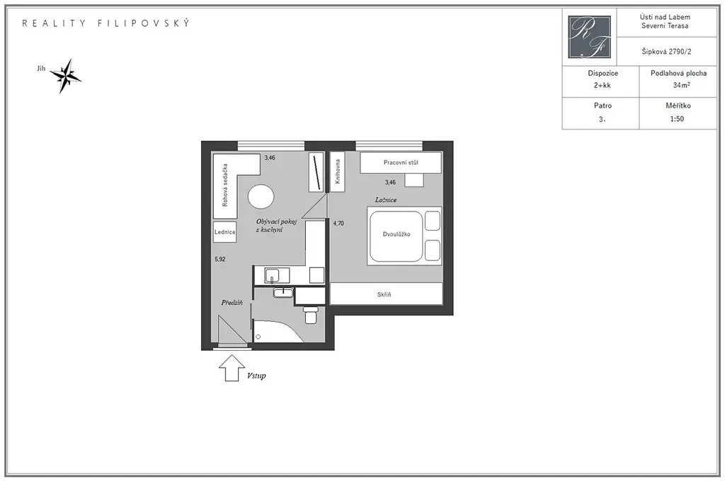 Dovoluji si Vám nabídnout zrekonstruovaný byt o dispozici 1+1 a výměře 34 m², který se nachází ve 3. patře revitalizovaného panelového domu ve velmi žádané lokalitě Ústí nad Labem – Severní Terasa.