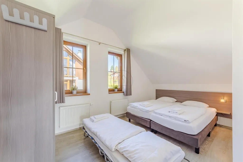 Velkorysý dům s kapacitou až 14 osob je vhodně navržen k uspokojení nejnáročnějších potřeb budoucích uživatelů a poskytuje exkluzivní místo k rekreaci, odpočinku, nebo trvalému bydlení. Objekt disponuje pěti ložnicemi, třemi koupelnami, zádveřím, skladem a prostorným obývacím pokojem s kuchyní, kde jde vstup na slunnou terasu s výhledem na jezero.