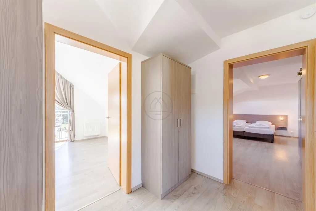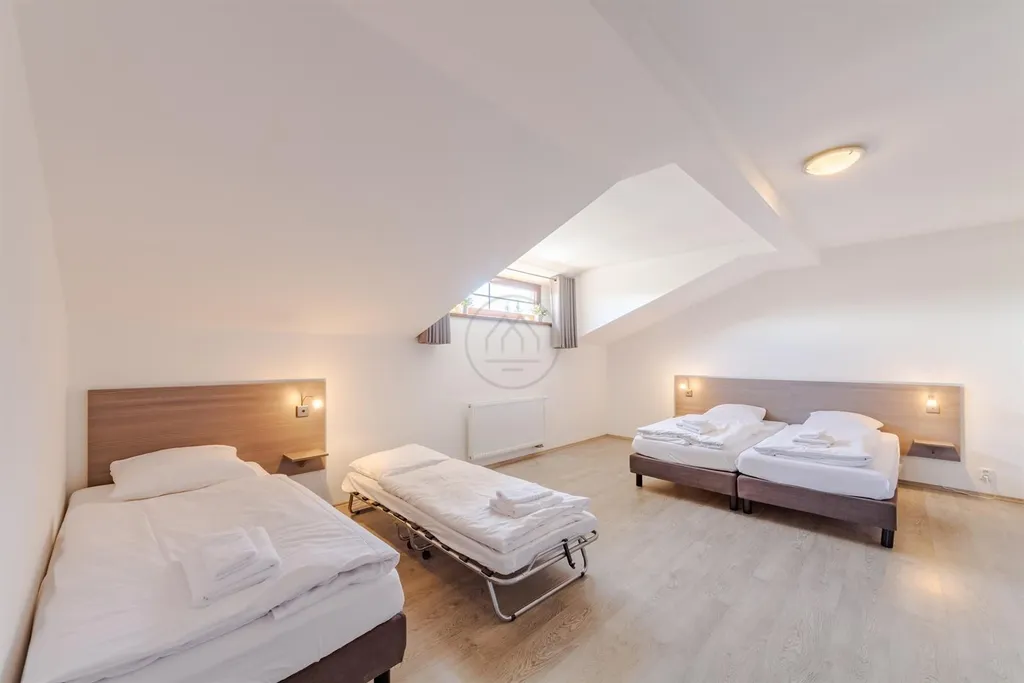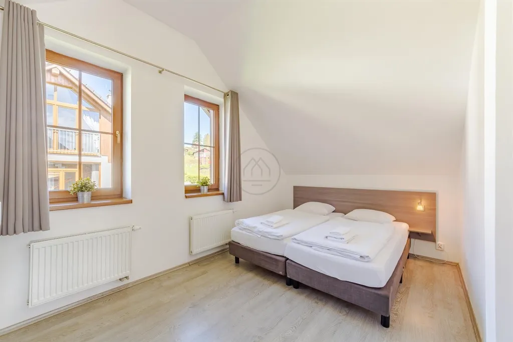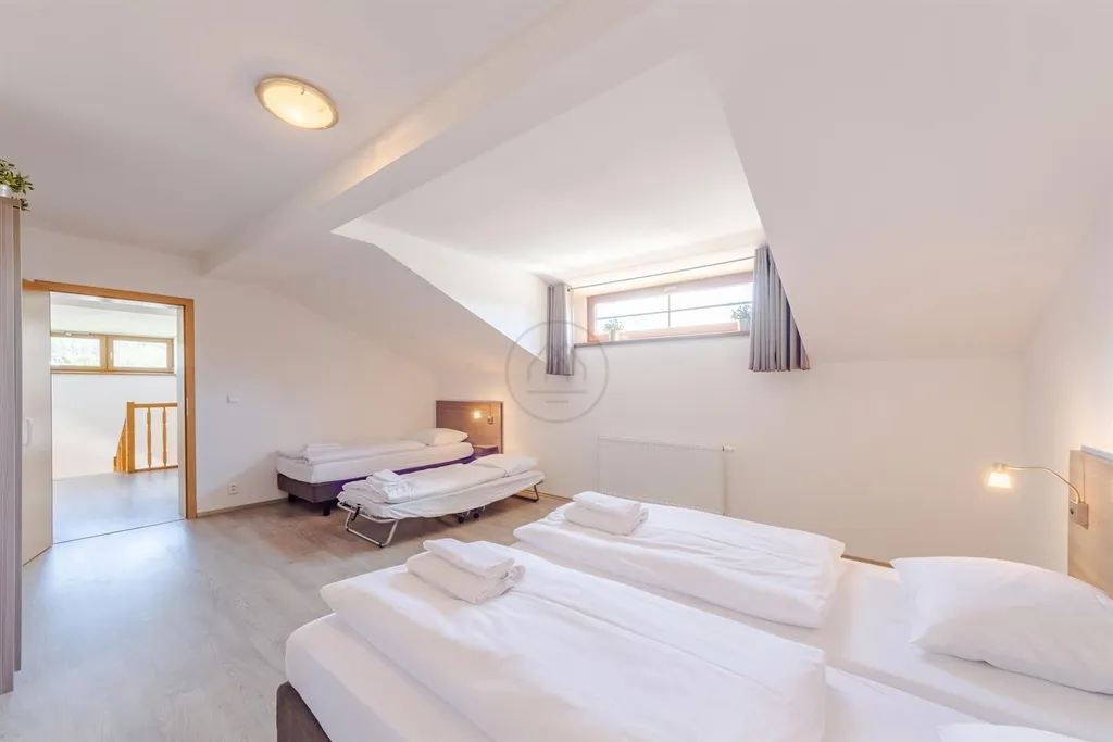 Jedná se o největší objekt v areálu Residence Lipno. Správcovská společnost zajišťuje provoz a údržbu areálu, včetně infrastruktury, recepce a dětské hřiště. Platí se cca 40.000, Kč ročně za vše (internet, údržba, veř. osvětlení, odpad atd.) kromě spotřeby elektřiny, která je zvlášť. Lze využít efektivní správy pronájmu nemovitosti v době Vaší nepřítomnosti. Předmětem prodeje je obchodní podíl účelově založené společnosti, která dům výlučně vlastní.