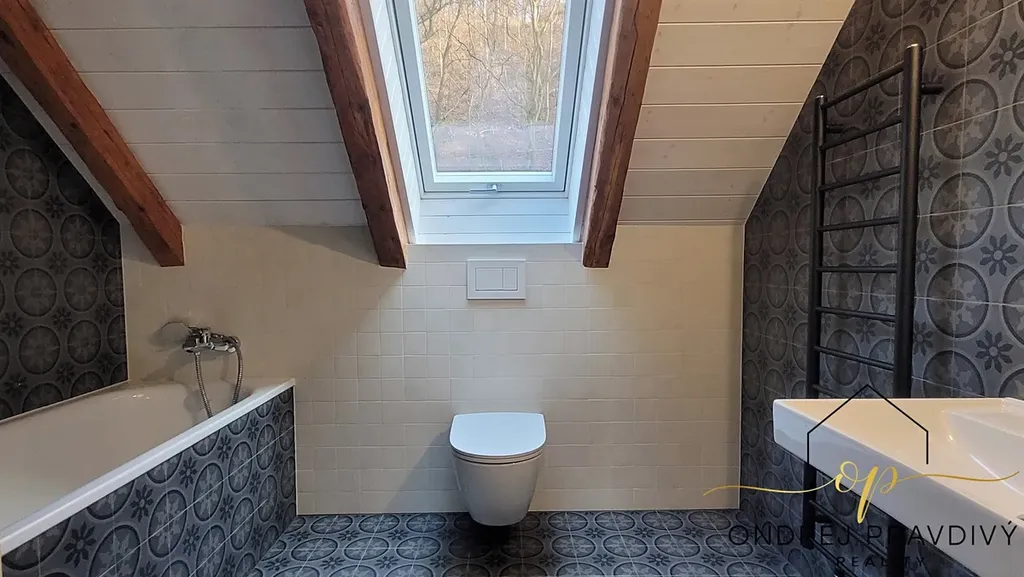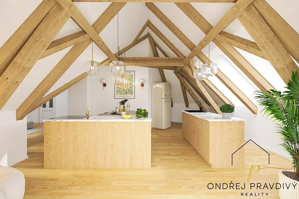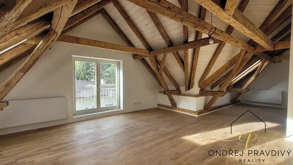 Byt se nachází v posledním 3. nadzemním podlaží a po kompletní přestavbě se může pyšnit nadstandardní kvalitou provedení a použitých materiálů. Provedení zahrnuje dřevěné plovoucí podlahy, dřevěná euro okna s trojskly, designové dlažby a nadčasové obklady. Značková sanita firem Laufen a Hansgrohe. Dále jsou datové rozvody, příprava na zabezpečení a elektromobilitu. Díky zateplení celého domu i vlastnímu kondenzačnímu kotli pro vytápění a ohřev vody budou provozní náklady skutečně příznivé. Převažující orientace na jiho-západ zajišťuje dostatek slunečního světla a stropy s přiznaným trámovím zase útulný pocit s puncem historie. Příslušenství bytu zahrnuje do zeleně orientovaný balkón, vlastní parkovací stání a prostorný sklep 11 m² na jakékoliv sportovní či sezónní vybavení. Další úložné prostory jsou v půdě nad bytem.