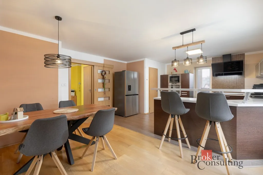 Dispozice domu je prakticky řešena jako dvougenerační – každé patro tvoří samostatná bytová jednotka s vlastní kuchyní a koupelnou. Toto uspořádání poskytuje dostatek soukromí pro dvě rodiny, případně nabízí zajímavou příležitost k pronájmu jedné části domu, nebo využití celého domu pro jednu rodinu.