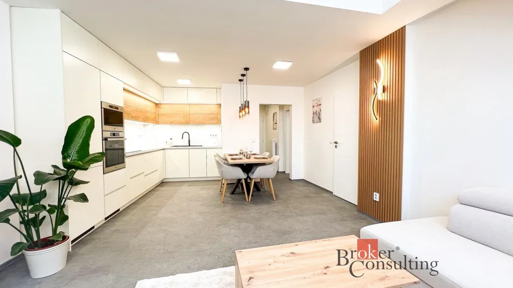 Nabízíme k pronájmu moderně řešený byt, který zaujme kvalitním zpracováním a nadčasovým designem. Interiér je laděn do světlých tónů v kombinaci s přírodními dřevěnými prvky, což vytváří příjemnou a útulnou atmosféru.