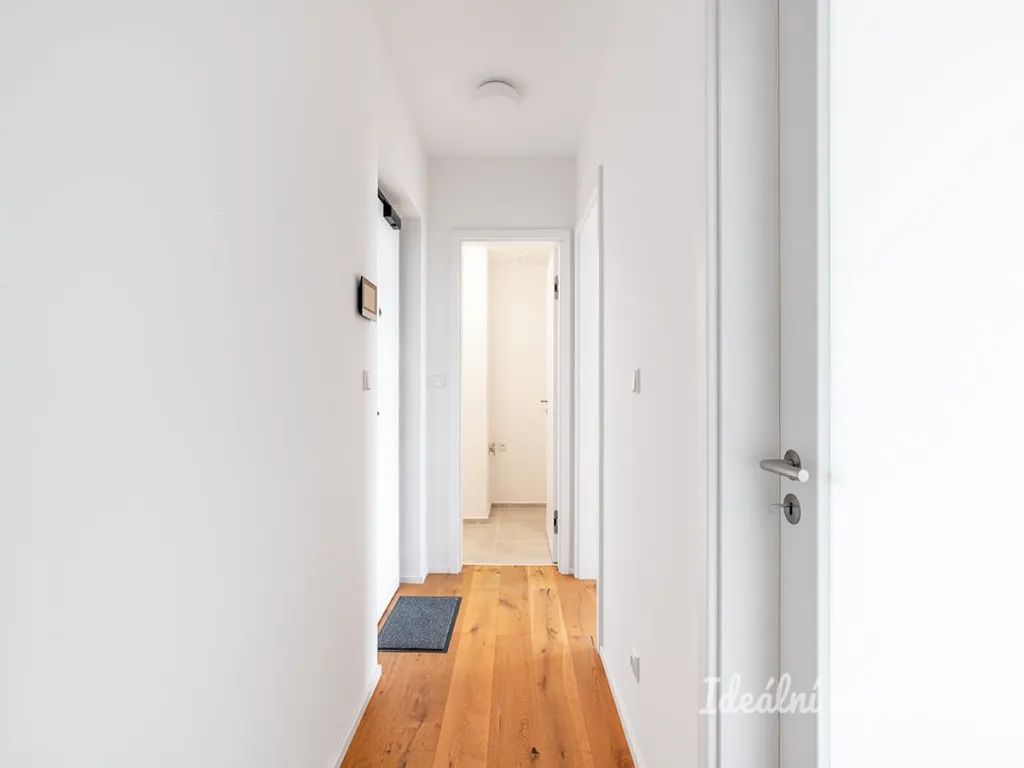 Skládá se ze vstupní, centrální chodby, koupelny zařízené sprchovým koutem, umyvadlem a toaletou, obývacího pokoje spojeného s kuchyňským koutem a vstupem na jižně orientovanou terasu s krásným výhledem na Hlubočepy, ložnice s velkou vestavnou šatní skříní a komory / technické místnosti, kde je přípojka na pračku.