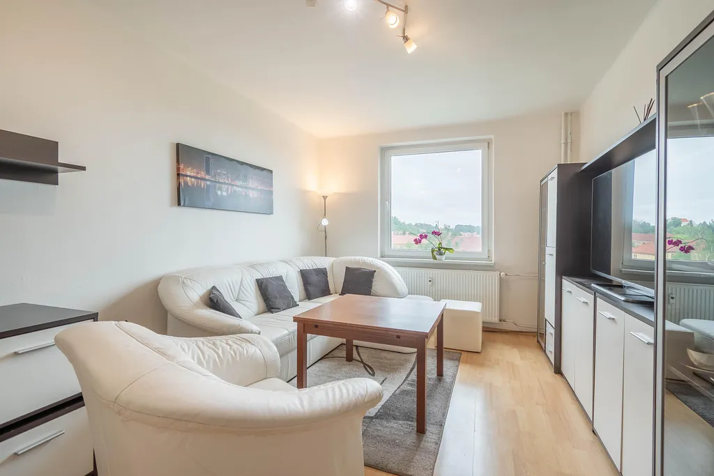 Nabízíme zprostředkování pronájmu velmi hezkého, světlého bytu o dispozicí 2+1 (50m²) s lodžií (2,4m²), umístěného v 5. patře revitalizovaného domu, s výhledem na Svatou Horu a Brdy.