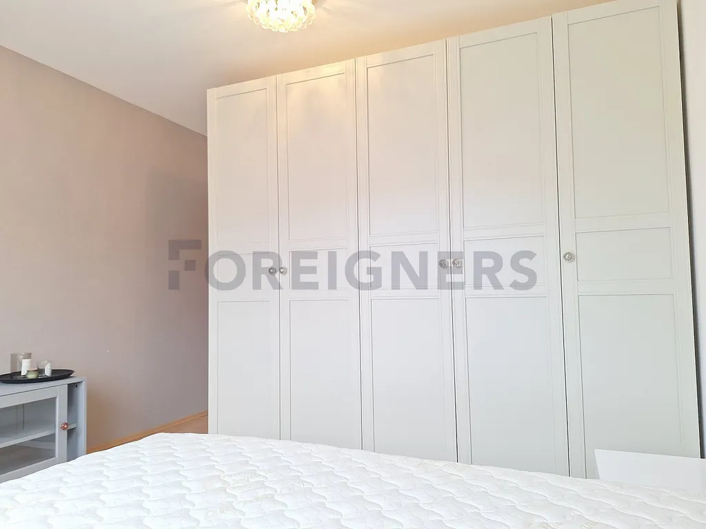Součástí útulné ložnice je postel a vestavěná skříň. Ve druhém pokoji se nachází psací stůl se židlí a skříní. Koupelna disponuje sprchovým koutem a umyvadlem se skříňkou, toaletou a bidetem. V koupelně je také pračka a sušička.