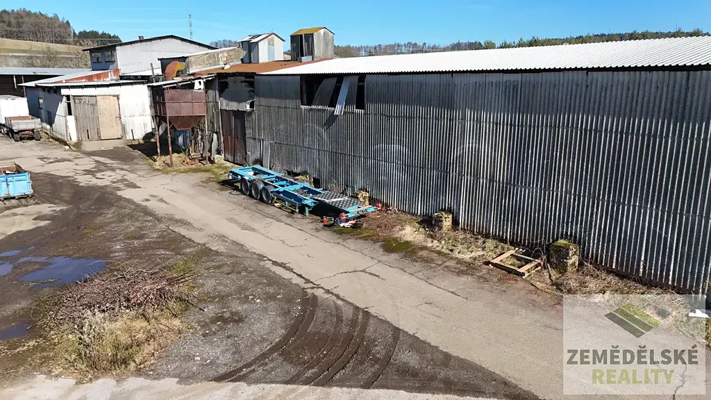 Bývalá posklizňová hala o užitné ploše 1.070 m2 je nabízena společně s manipulační plochou o velikosti 4.613 m2.