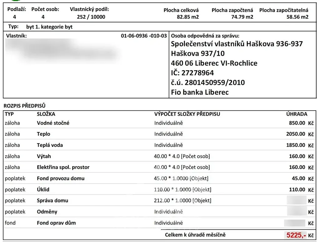 Nájem 18.500,- Kč, vratná kauce 2x nájem = 37.000,- Kč , provize RK 11.200,- Kč. Služby na 4 osoby: 5.225,- Kč majiteli + elekřina na nájemníka. Celkem je nutné mít tedy připraveno 71.925,- Kč + platba elekřiny.