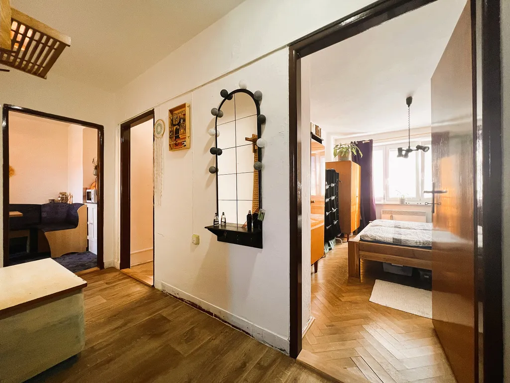 Byt prošel před 8 lety částečnou rekonstrukcí. Je zde nová kuchyňská linka, koupelna se sprchovým koutem, kde se pohodlně vejde i pračka se sušičkou. Podlahy jsou v kombinaci dřevěných parket v pokojích, dlažby v koupelně, plovoucí podlahy ve vstupní chodbě a kuchyni. V jídelním koutě je koberec. V bytě je možné ponechat pračku, lednici, kuchyňskou lavici se stolem a židlemi a dvě velké skříně v ložnici, vše je na dohodě s majiteli.