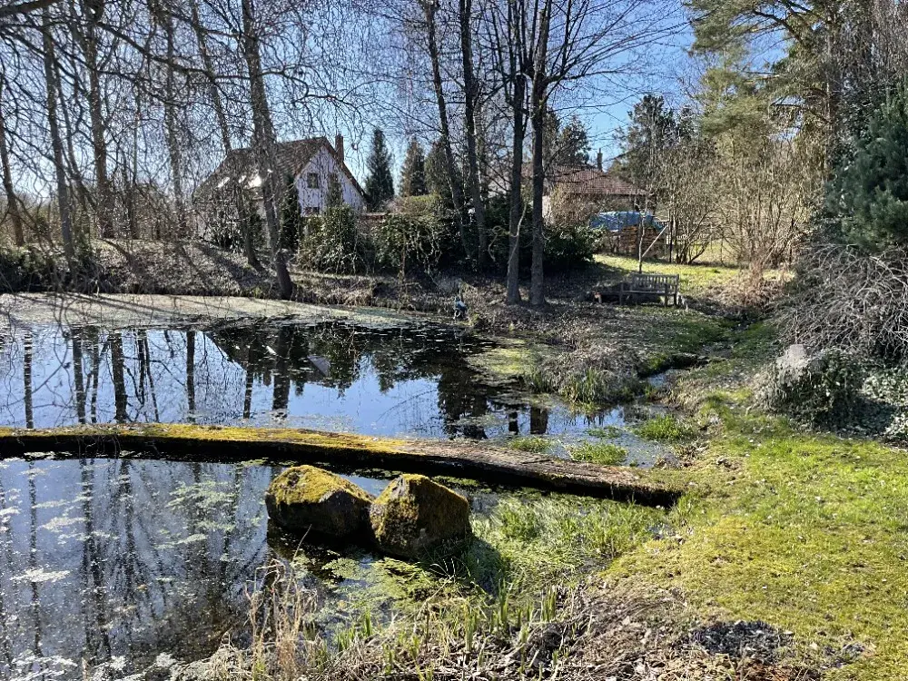 Objekt je napojen na elektřinu, veřejný vodovod, vlastní naráženou studnu, kanalizace je svedena do jímky. U domu se nachází rozlehlé pozemky s jezírkem, trvalými porosty, skleníkem, venkovní