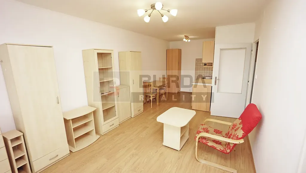 V bytě pro podnájemníka zůstane kuch. linka se sporákem, rozkládací jídelní stůl se 2 židlemi, křeslo, konferenční stolek, obývací stěna, v ložnici šatní skříň a policová skříňka, v chodbě vestavěné natřené skříně, věšáková stěna a botník.
