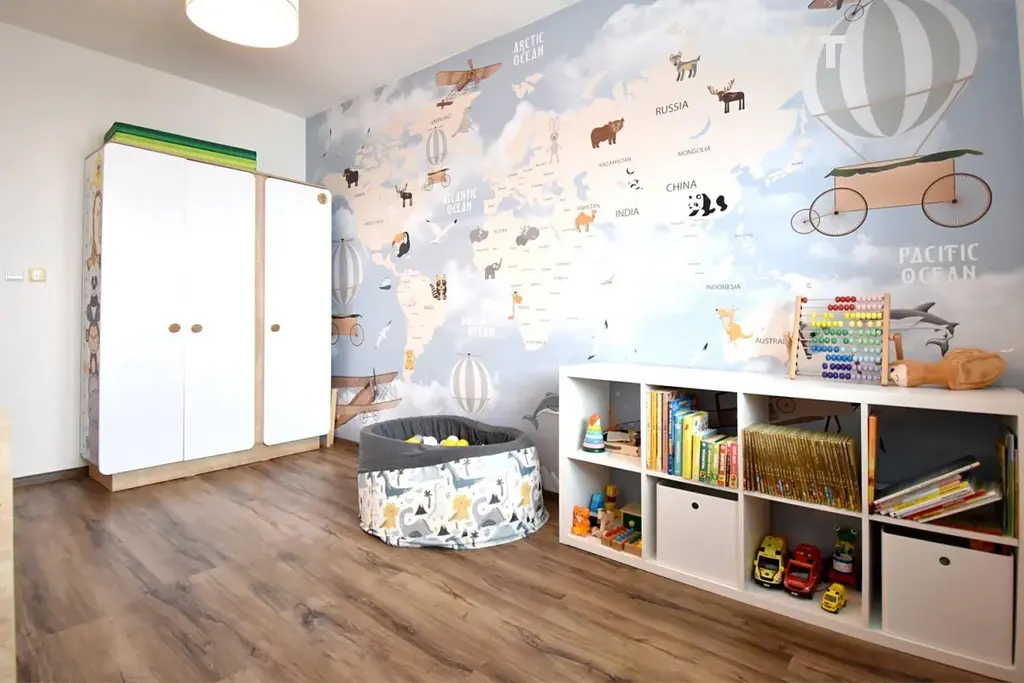 V bytě zůstávají zabudované elektrospotřebiče v kuchyňské lince, televizní stěna v obývacím pokoji, velká vestavěná skříň v ložnici a šatní skříň se zrcadlem na chodbě. Vytápění je řešeno elektrickým podlahovým topením, na podlaze je vinil a dlažba, v plastových oknech jsou venkovní žaluzie.