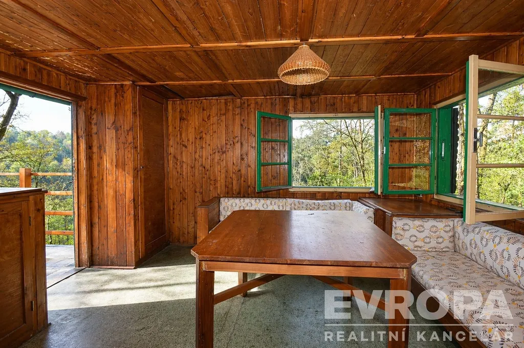 Chata se nachází na lesním pozemku v mírném svahu, obklopená přírodou, s dostatkem soukromí a krásnými výhledy do okolní krajiny. Řeka Berounka je v údolí cca 7min. pěšky. Jedná se o ideální místo pro odpočinek, víkendové pobyty i únik z města.