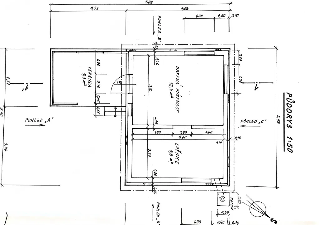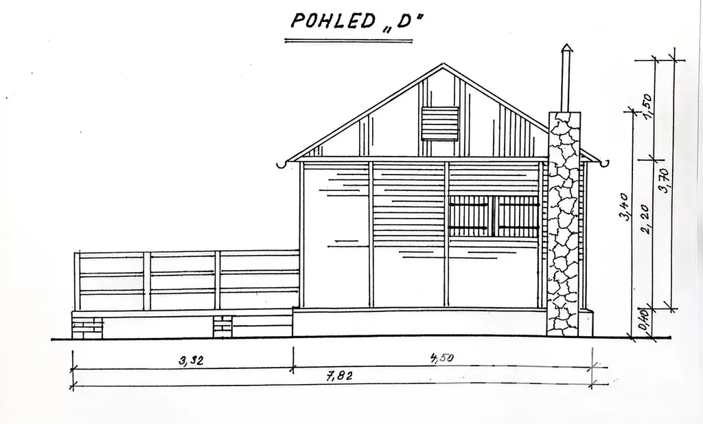 Dispozice chaty 1+1 / terasa, sklípek, úložné podkroví:
