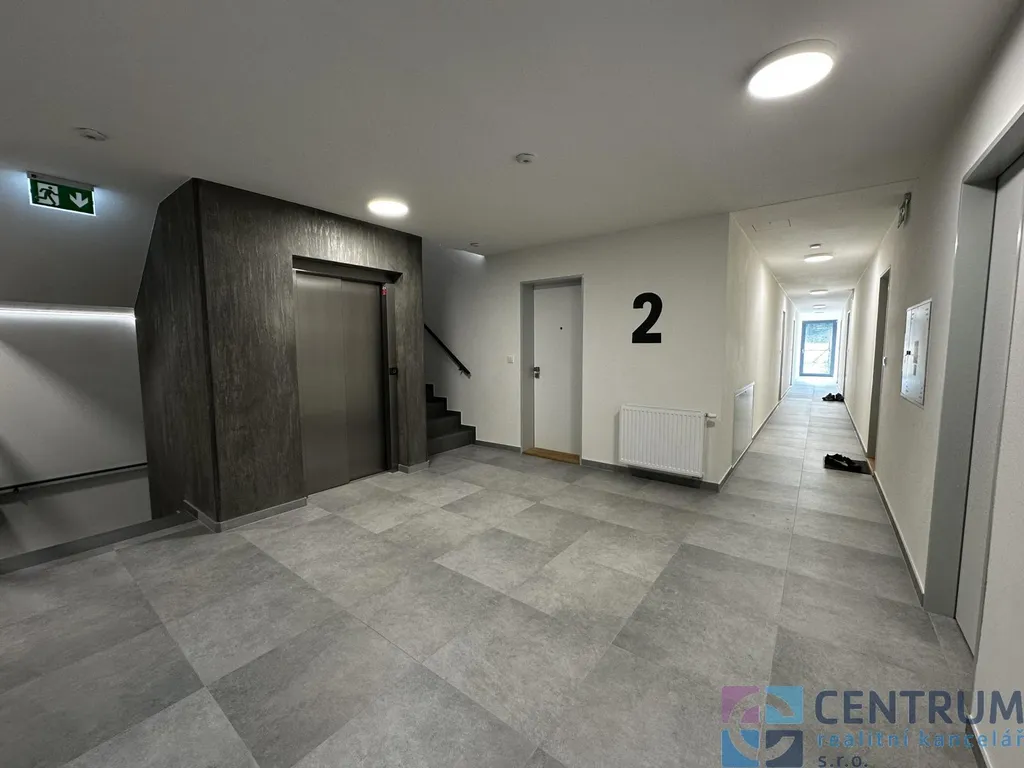 Byt se nachází ve 2. nadzemním podlaží domu s výtahem a jeho dispozice zahrnuje prostornou obytnou místnost s kuchyňským koutem, koupelnu vybavenou sprchovým koutem, vanou i toaletou, praktickou komoru pro skladování věcí a předsíň. Díky kvalitním oknům s trojskly je v bytě naprostý klid, navíc si můžete užívat výhled do zeleně. O tepelný komfort se v celém bytě stará moderní podlahové vytápění.