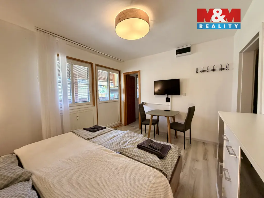 Nabízíme k prodeji útulný byt 1+kk v osobním vlastnictví o podlahové ploše 20 m² s balkonem 8 m² a unikátní možností rozšíření o půdní vestavbu, díky které lze celkový prostor navýšit až na 49 m². Byt se nachází ve 3. podlaží třípodlažního domu ve vyhledávané lokalitě Lipno nad Vltavou, jen pár minut od jezera i kompletní infrastruktury. Byt prošel kompletní rekonstrukcí – nové rozvody elektřiny a vody, moderní kuchyňská linka, podlahy, koupelna, WC i sádrokartonové podhledy. O vytápění se starají nové radiátory, které spolu s kvalitní izolací zajišťují velmi příjemné provozní náklady. Samotný dům je po revitalizaci: zateplení, nová střecha, plastová okna a tepelné čerpadlo. Dispozice bytu: obývací pokoj s kuchyňským koutem a vstupem na balkon, WC a koupelna se sprchovým koutem. Byt se nachází v klidné části obce, nabízí vlastní parkování před domem a možnost odpočinku na společné zahradě. Byt se prodává včetně vybavení, takže je připraven k okamžitému užívání bez dalších investic.