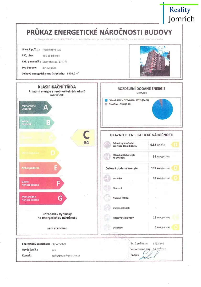 Průkaz energetické náročnosti budovy je v kategorii „C" – úsporná.