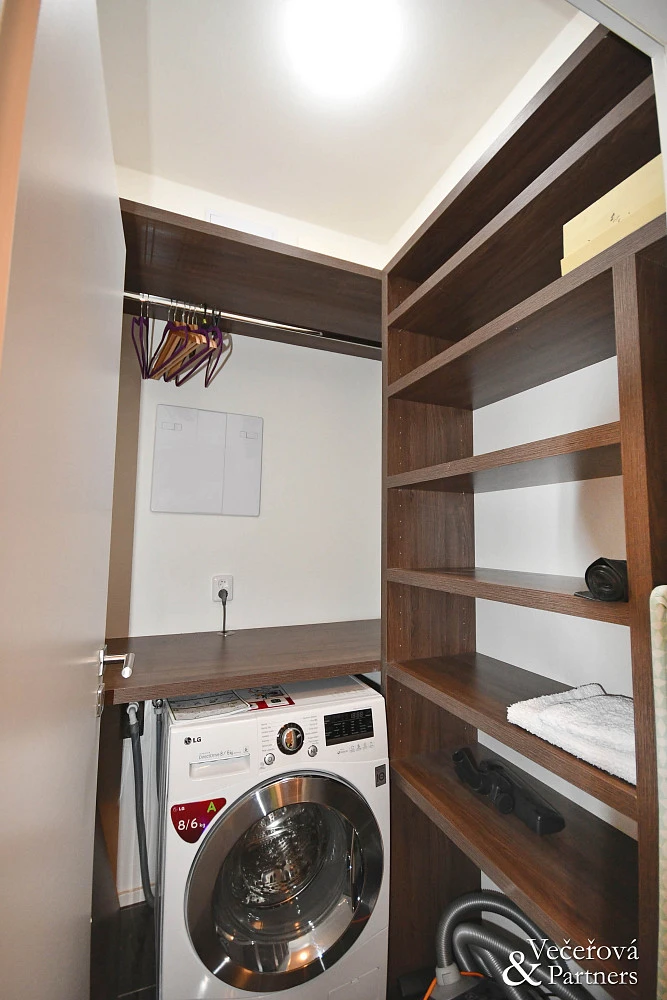 V celém bytě jsou použity nadstandardní materiály, dřevěná podlaha, předokenní rolety na dálkové ovládání, bezpečnostní dveře. Plně vybavená kuchyňská linka se spotřebiči.