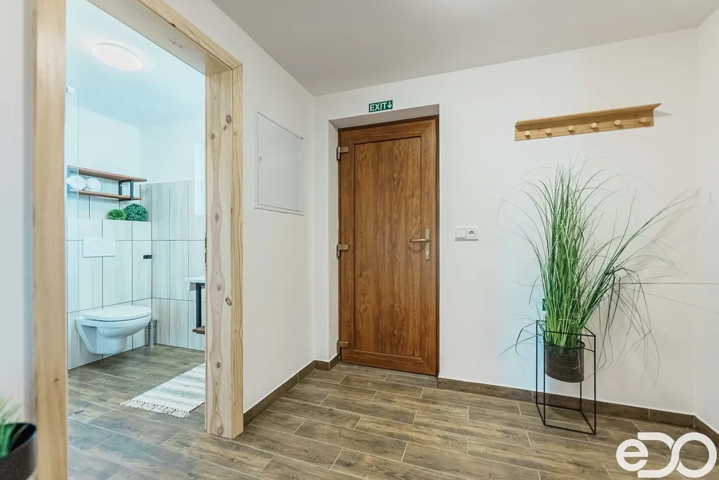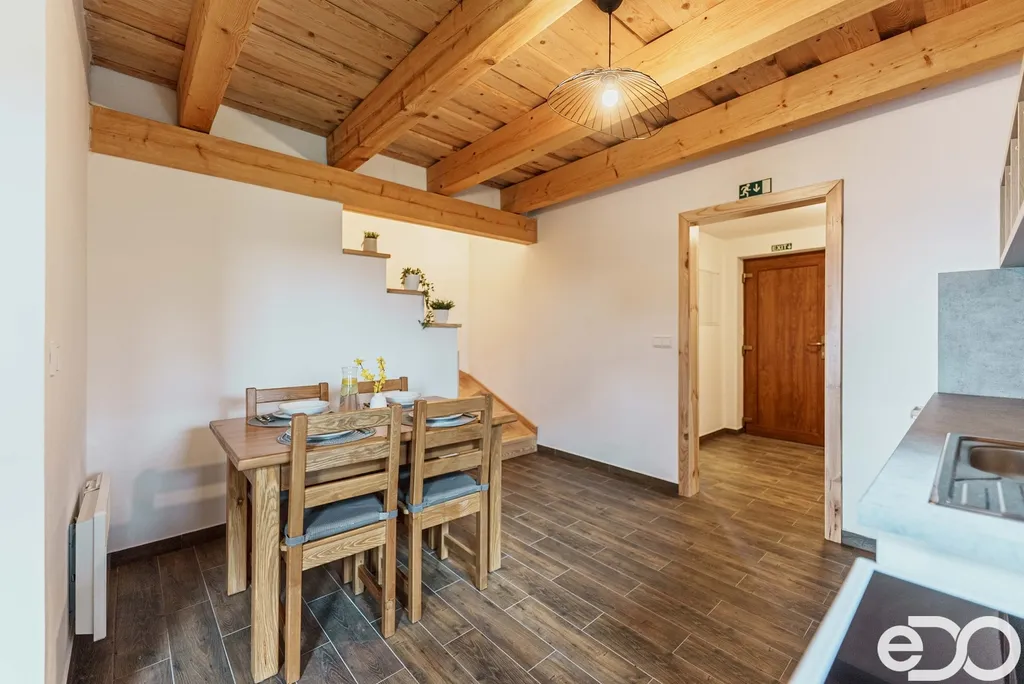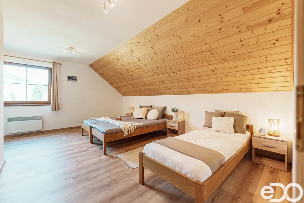 Ve výhradním zastoupení majitele nabízím k prodeji dům se dvěma apartmány o dispozici 3+kk, situovaný na krásném místě s výhledem do okolních hor. Apartmán o celkové ploše cca 100 m², představuje ideální místo pro odpočinek v srdci přírody, pouhé 2 km od oblíbeného horského střediska Dolní Morava. Apartmány zaujmou svou útulnou atmosférou, která spojuje moderní prvky s přírodními materiály. V interiéru najdete dřevěné schody, pokoje obložené dřevem a v přízemí krbová kamna, která dotvářejí příjemný horský charakter nemovitosti. Vytápění je doplněno elektrickými přímotopy. Součástí každého apartmánu je moderní sprchovým kout společně s toaletou v dekoru imitace dřeva, stylově doplněný černými prvky. Každý dům má vlastní dřevěnou kůlnu na nářadí. Pro všechny objekty je zajištěna společná voda a ČOV.