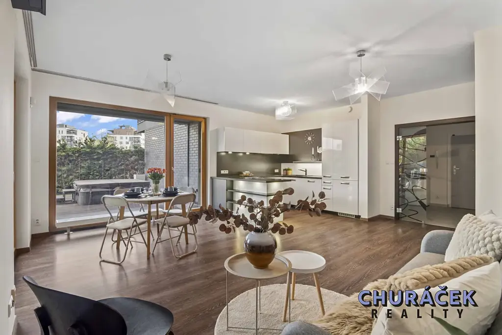 Ve výhradním zastoupení nabízíme ke koupi nadstandardní byt o dispozici 3+kk se soukromou zahrádkou, situovaný v oblíbeném rezidenčním projektu Zelené město, v ulici V Třešňovce, Praha.