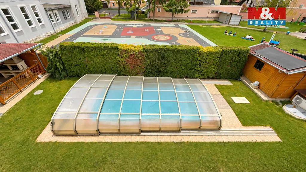 Velkou předností je možnost využití soukromé zahrady o výměře 350 m², kde se nachází bazén (3,5 × 7,5 m), pergola pro příjemné posezení a garáž o velikosti 24,5 m².
