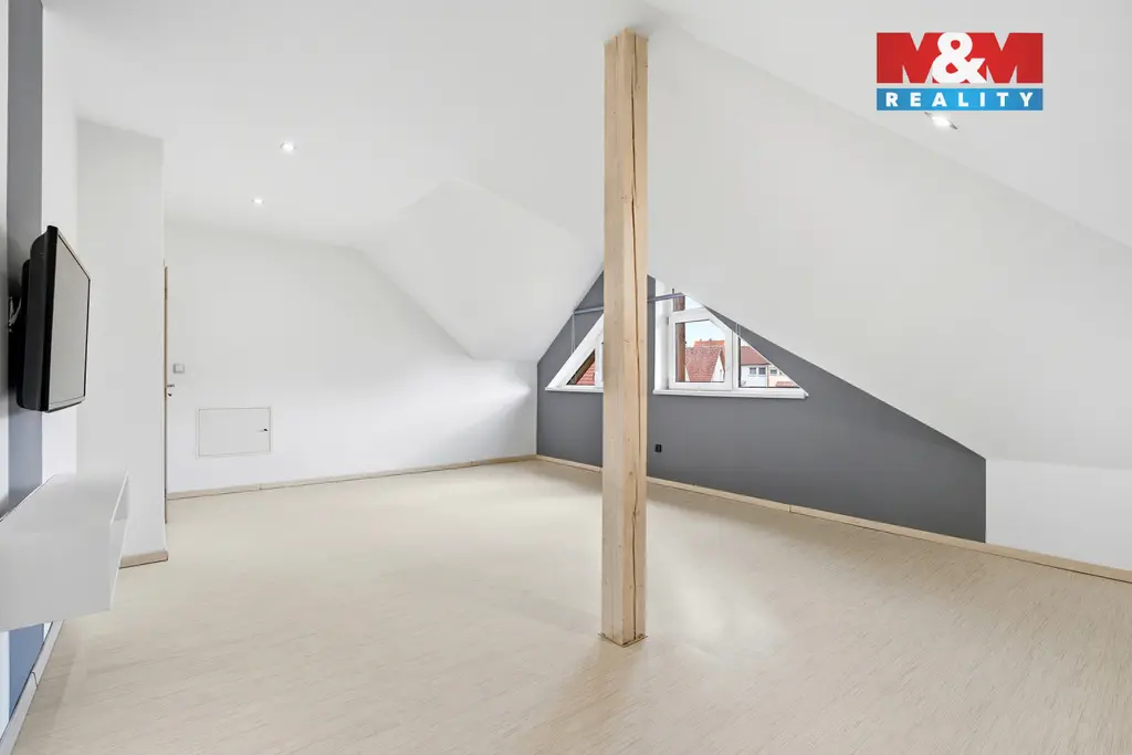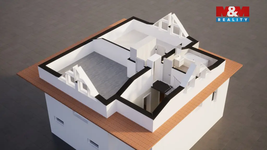 Hlavní obytný prostor je propojený s kuchyní a terasou, takže většina dne se přirozeně odehrává právě tady. Horní podlaží nabízí otevřený prostor s atypickými výhledy, ideální jako klidová zóna, pracovna nebo ateliér. Suterén rozšiřuje možnosti využití – fitness, zázemí pro podnikání nebo samostatnou pracovnu.