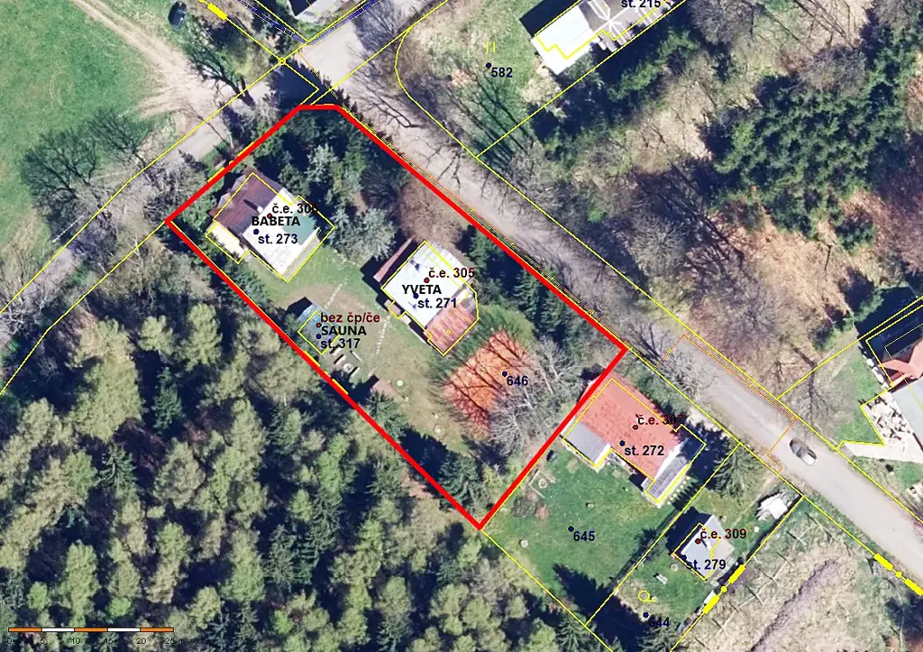 Jedná se o rekreační areál, ve kterém se nachází dvě patrové stavby s dobrým stavem objektu, tenisový kurt, ohniště, sauna, parkovací stání přímo v areálu.