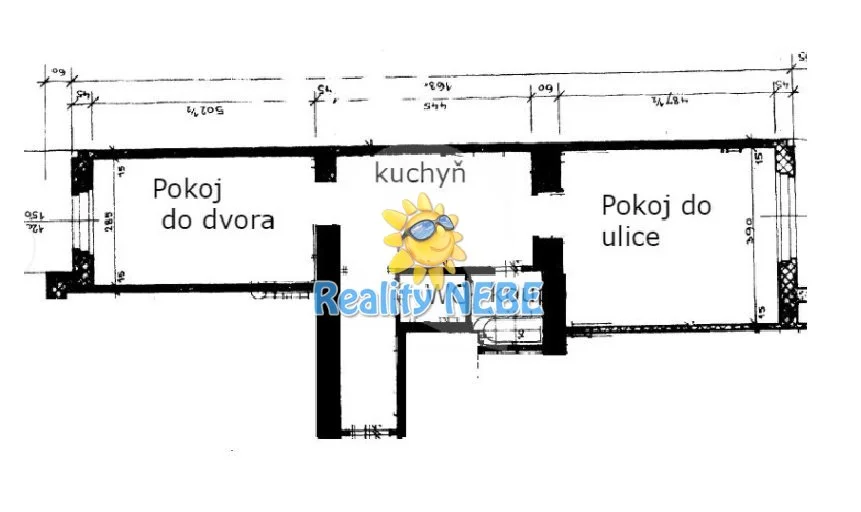 Byt je po kompletní rekonstrukci, skládá se ze dvou samostatných neprůchozích pokojů, jeden s výhledem na ulici a druhý do zahrady. Dále je zde zařízená kuchyně v chodbě (elektrická trouba, sklokeramická varná deska, digestoř). Koupelna s vanou a pračkou, wc je zvlášť.