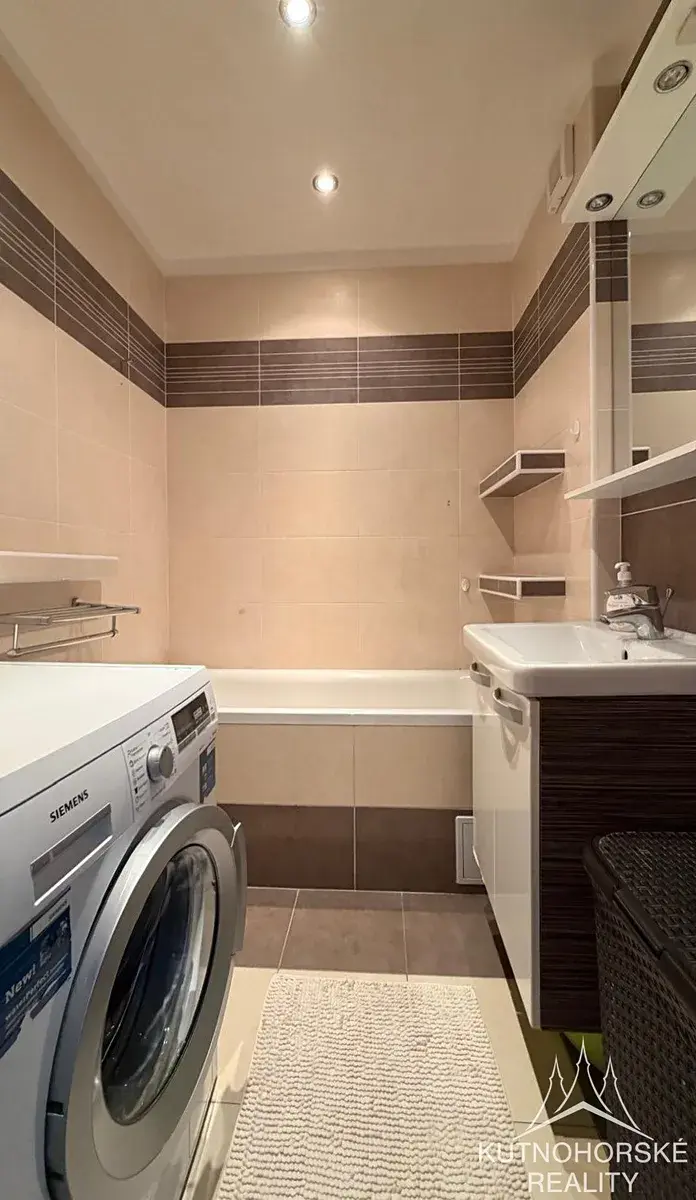 Byt je zařízen funkčními spotřebiči a vybavením (lednice, mikrovlnná trouba, plynový sporák s troubou, digestoř, pračka, sušička, TV, nábytek dle fotografií).