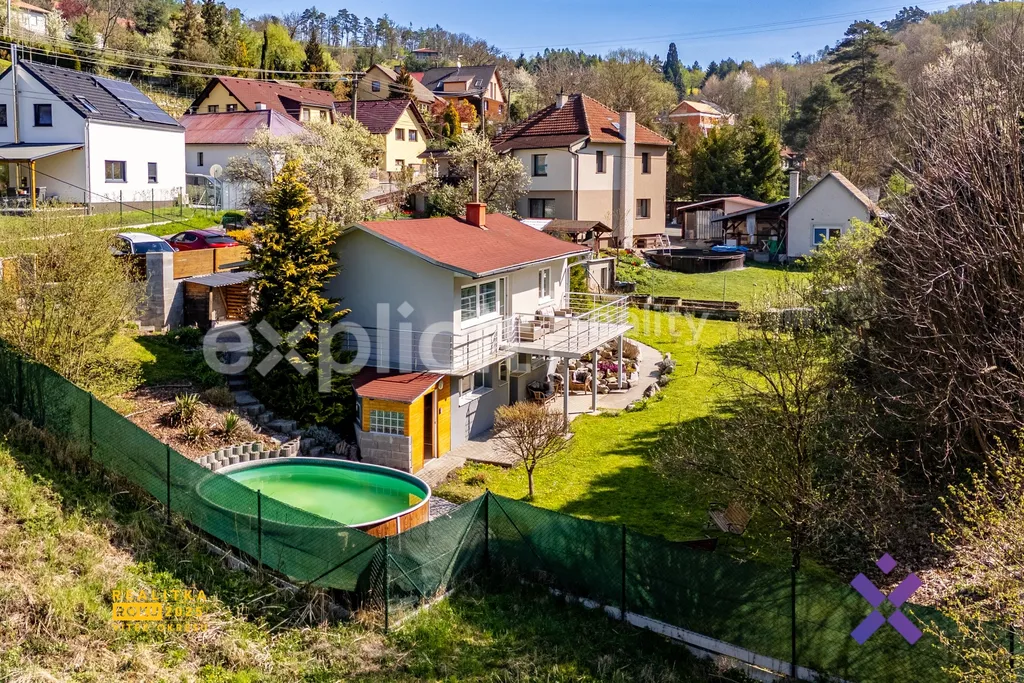 Jan Biernát & Explicit reality nabízí ke koupi stylový rodinný dům se dvěmi bytovými jednotkami, bazénem, terasou a slunnou zahradou v klidném prostředí plném zeleně.