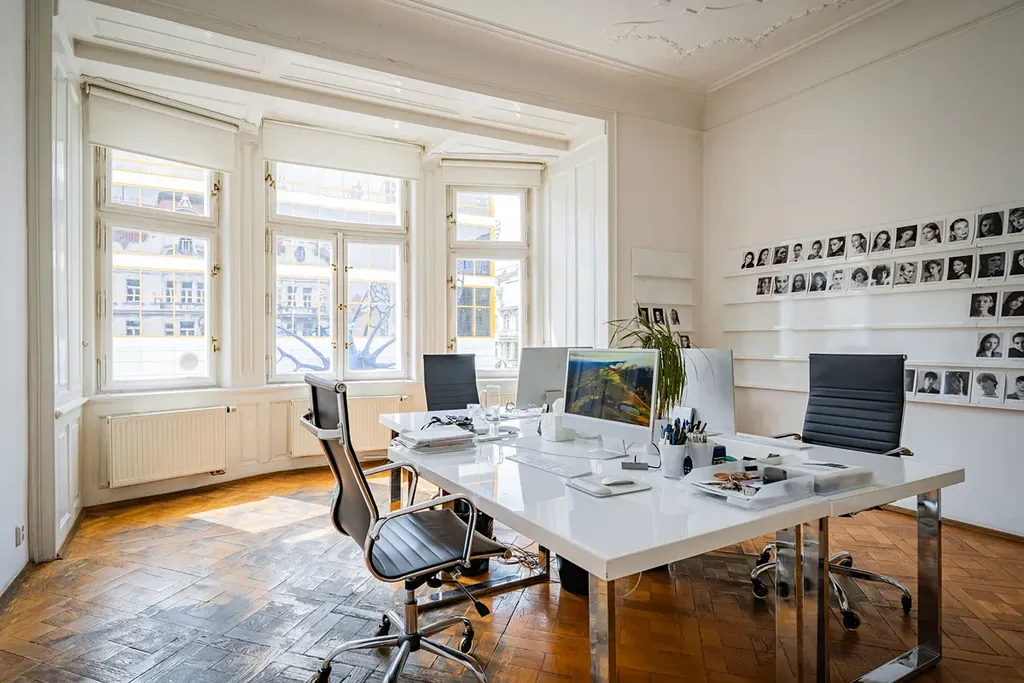 Jedinečné prostorné kanceláře s dispozici 5+1 s balkonem, a celkové výměře 197 m², jsou situované ve 3. patře reprezentativního historického domu s výtahem v jedné z nejprestižnějších lokalit Prahy – v samém srdci Starého Města, na adrese Na Perštýně, Praha 1.
