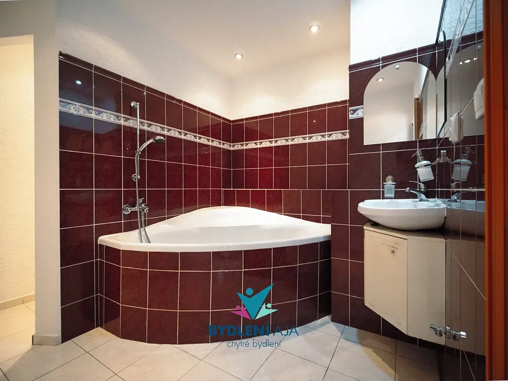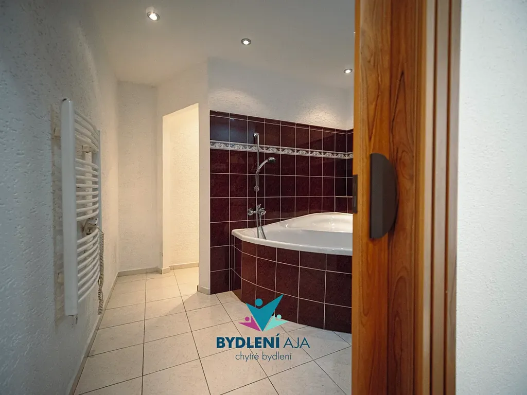 Velkým benefitem je také prostorná koupelna s rohovou vanou, která zvyšuje komfort bydlení. Je zde oddělené WC.